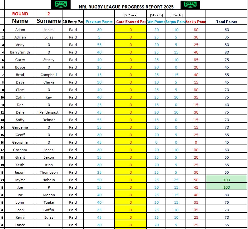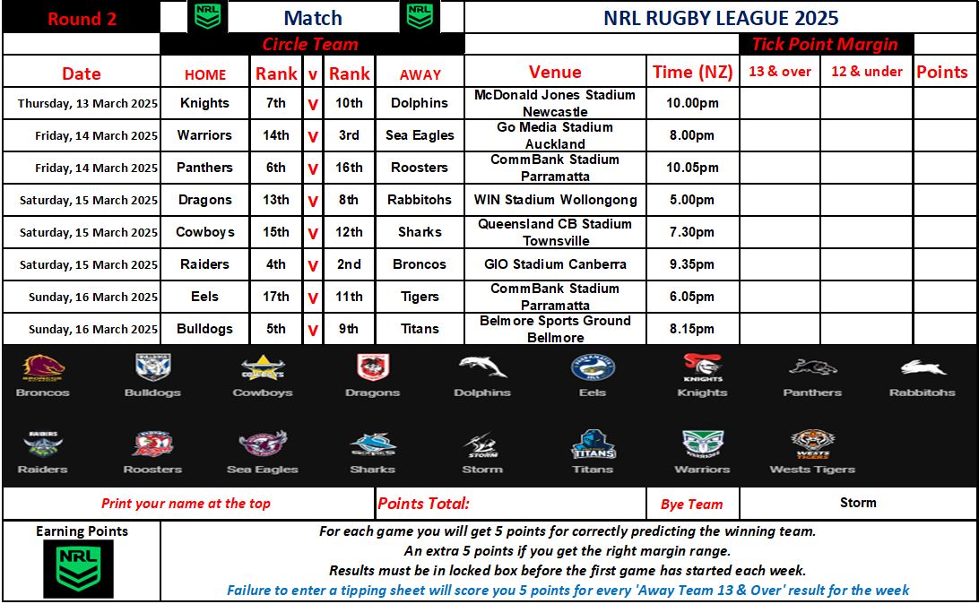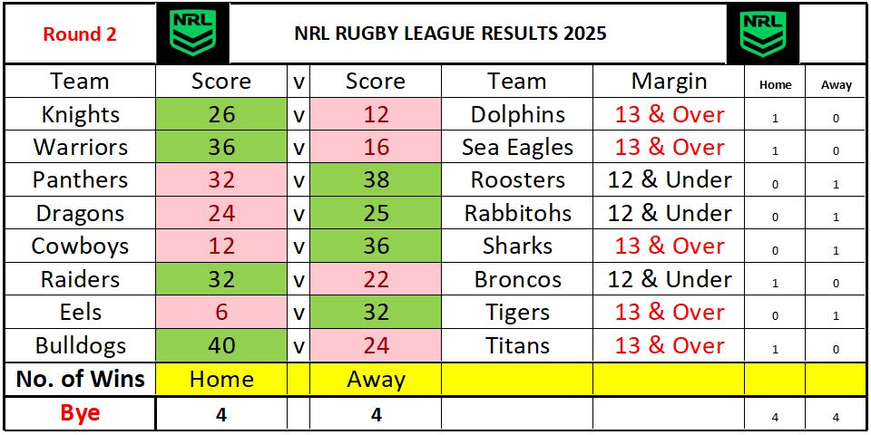 NRL Sports Tipping – Round 2 Weekly Draw & Results