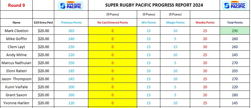 Super Rugby Pacific Sports Tipping Round 9 Weekly Draw & Results