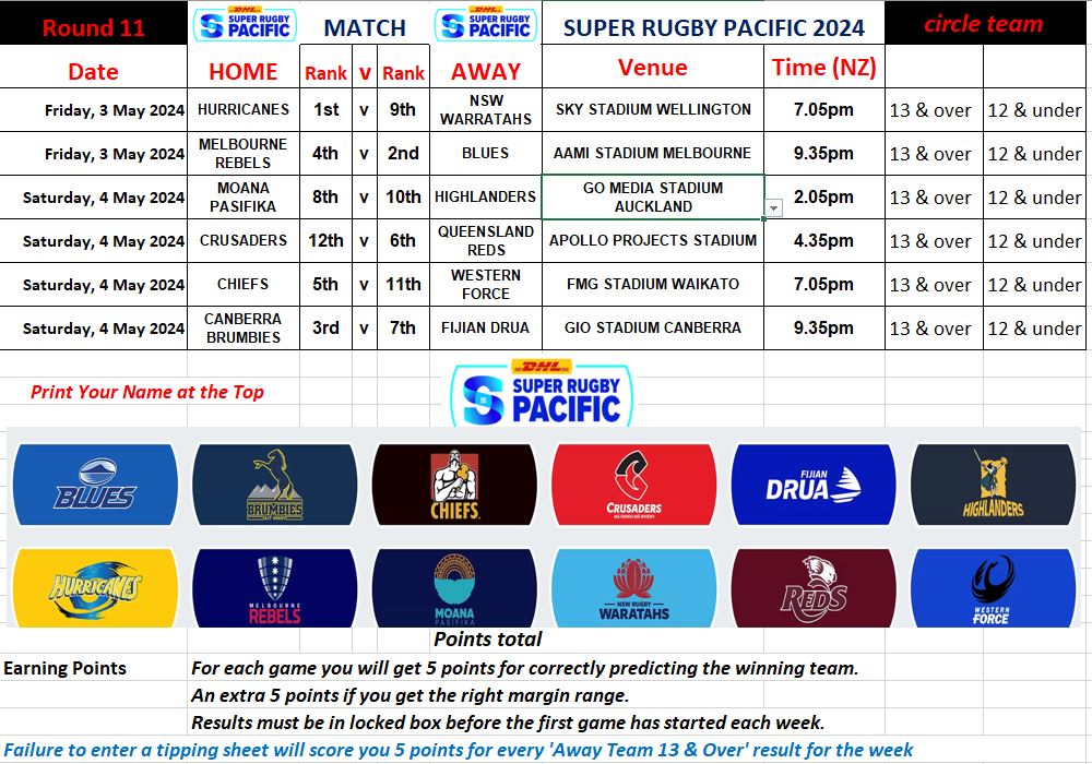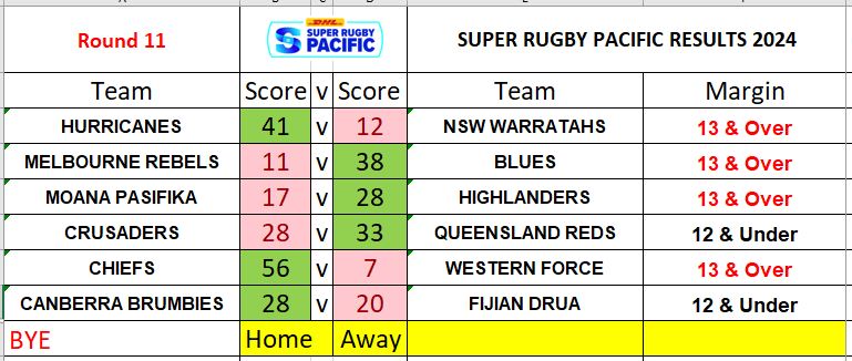 Super Rugby Pacific Sports Tipping Round 11 Weekly Draw & Results