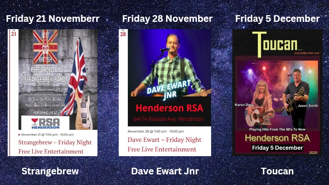 The Henderson RSA welcomes all its Members, New Members and Guests to the Razza