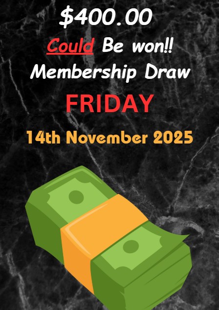 Come along to our Club every Wednesday and Friday to be in to win the Membership Draw