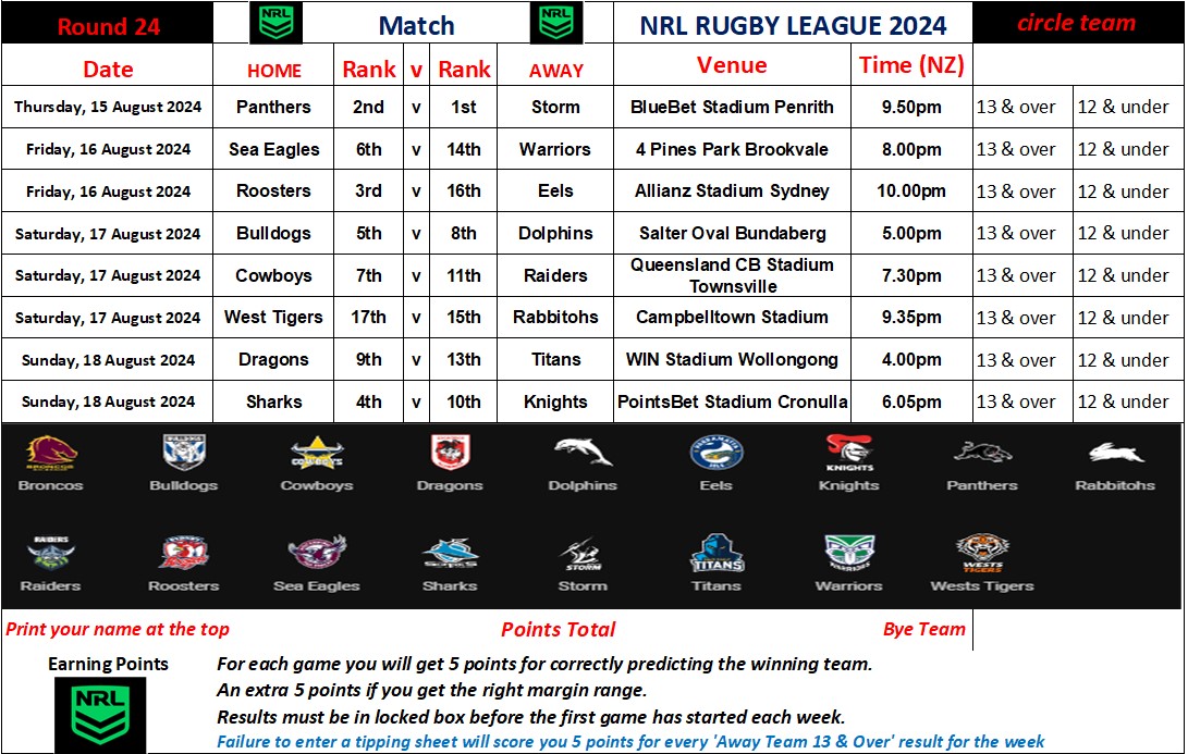 Week FIVE Friday Draw – 16th August 2024 is $500.00