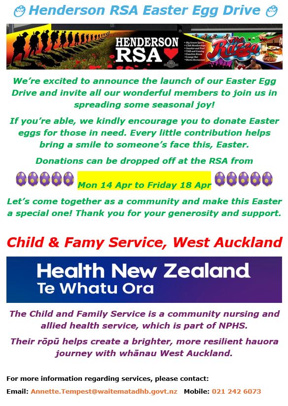 Please contact the Secretary Manager if you would like to discuss advertising in the Henderson RSA Newsletter, or on our in house screen advertising.