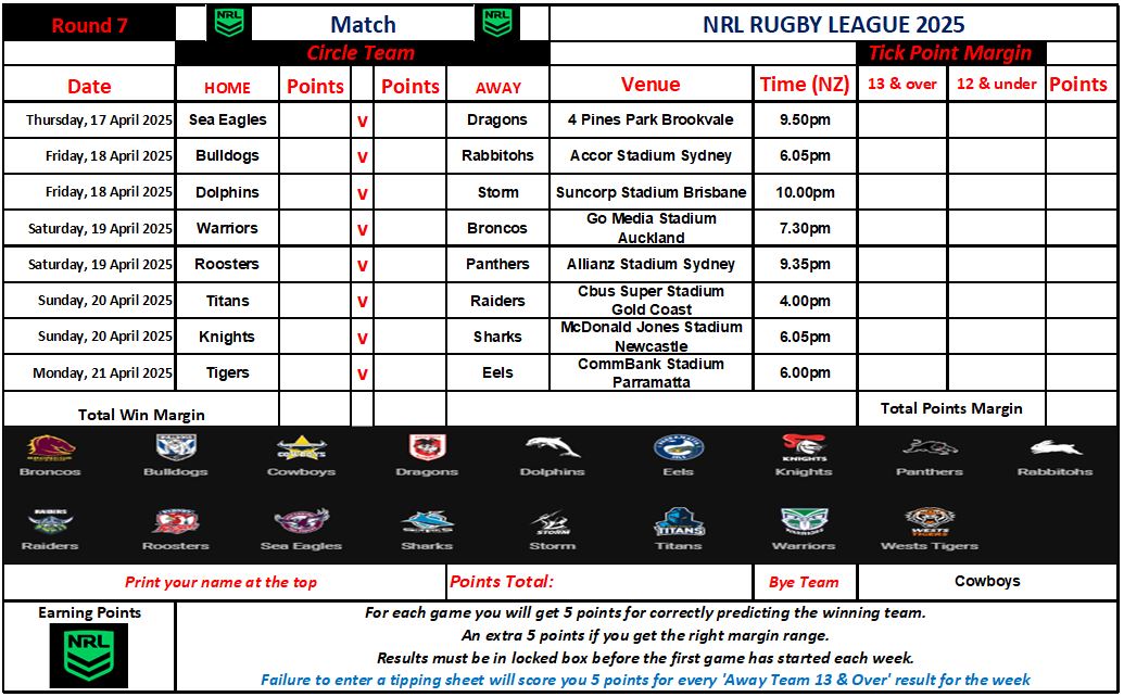 Week SEVEN Friday Draw – 18th of April 2025 –