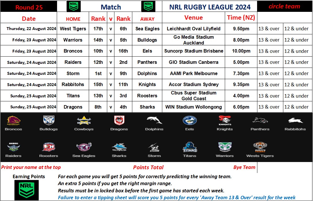 Week SIX Friday Draw –  23rd August 2024 is $600.00
