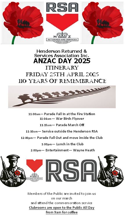 The Henderson RSA welcomes all its Members, New Members and Guests to the Razza