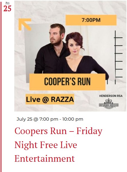 The Henderson RSA welcomes all its Members, New Members and Guests to the Razza