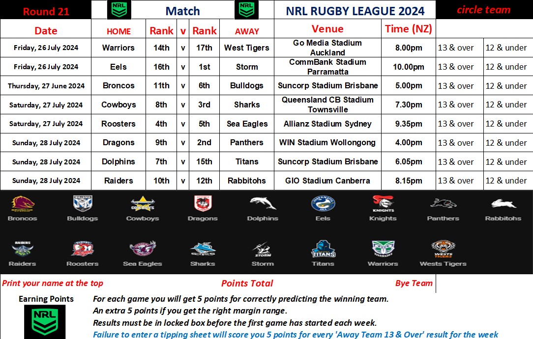 Week FOUR Wednesday Draw – 24th of JULY is $400.00