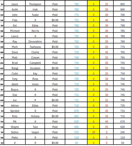 Please note that food offerings is only for those who participated in the NRL tipping competition.