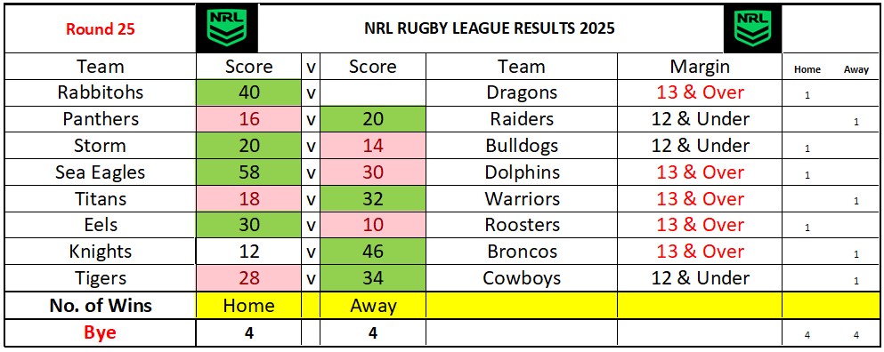 Round 25 results