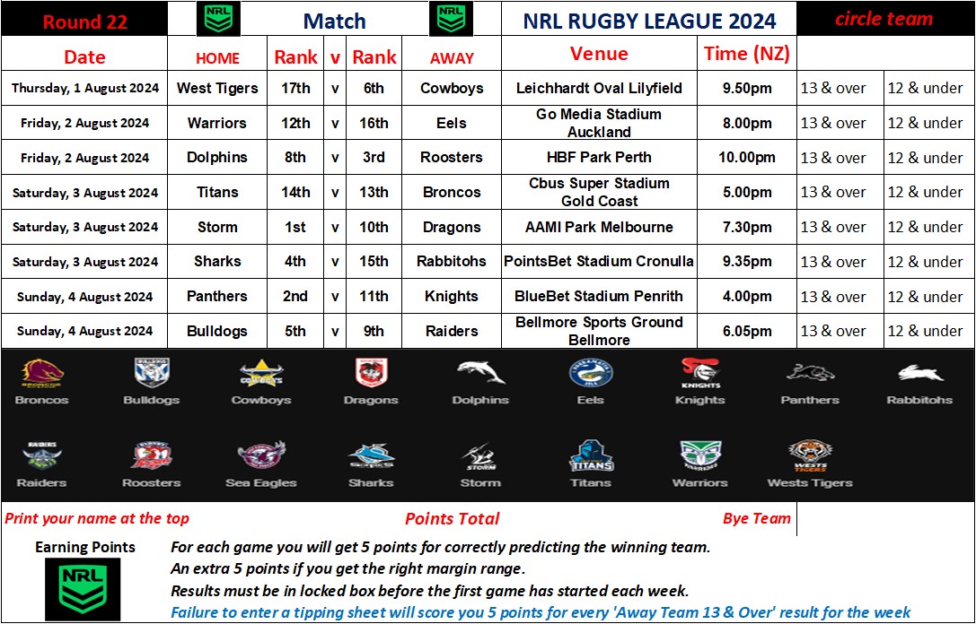 NRL Round Twenty Two