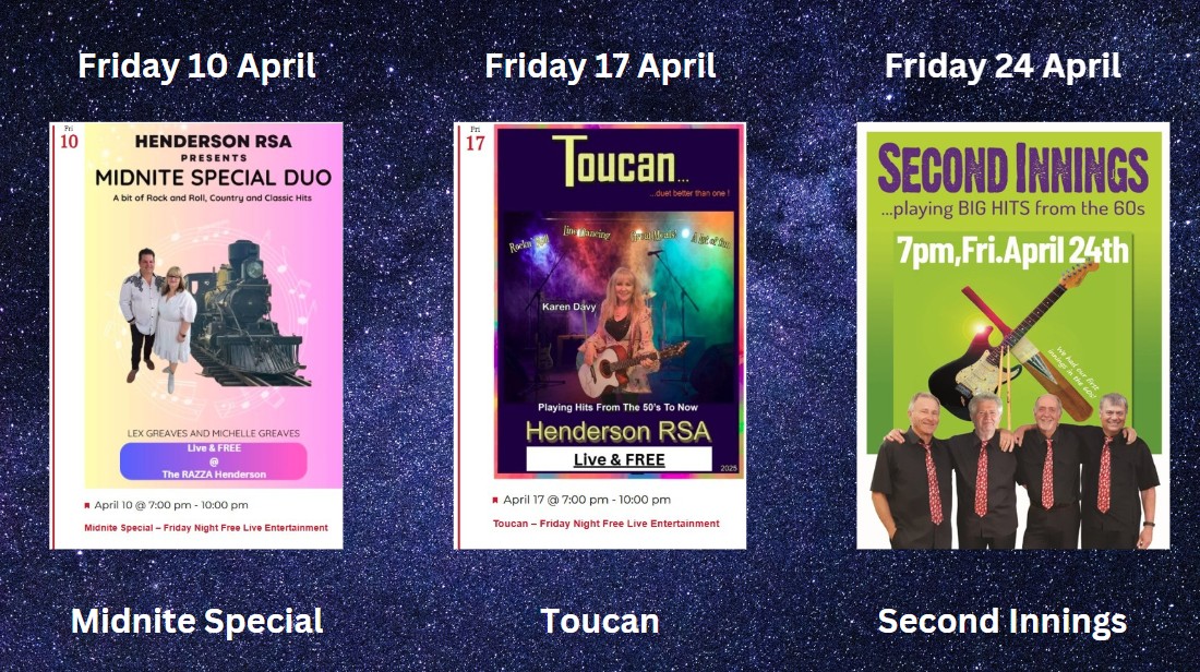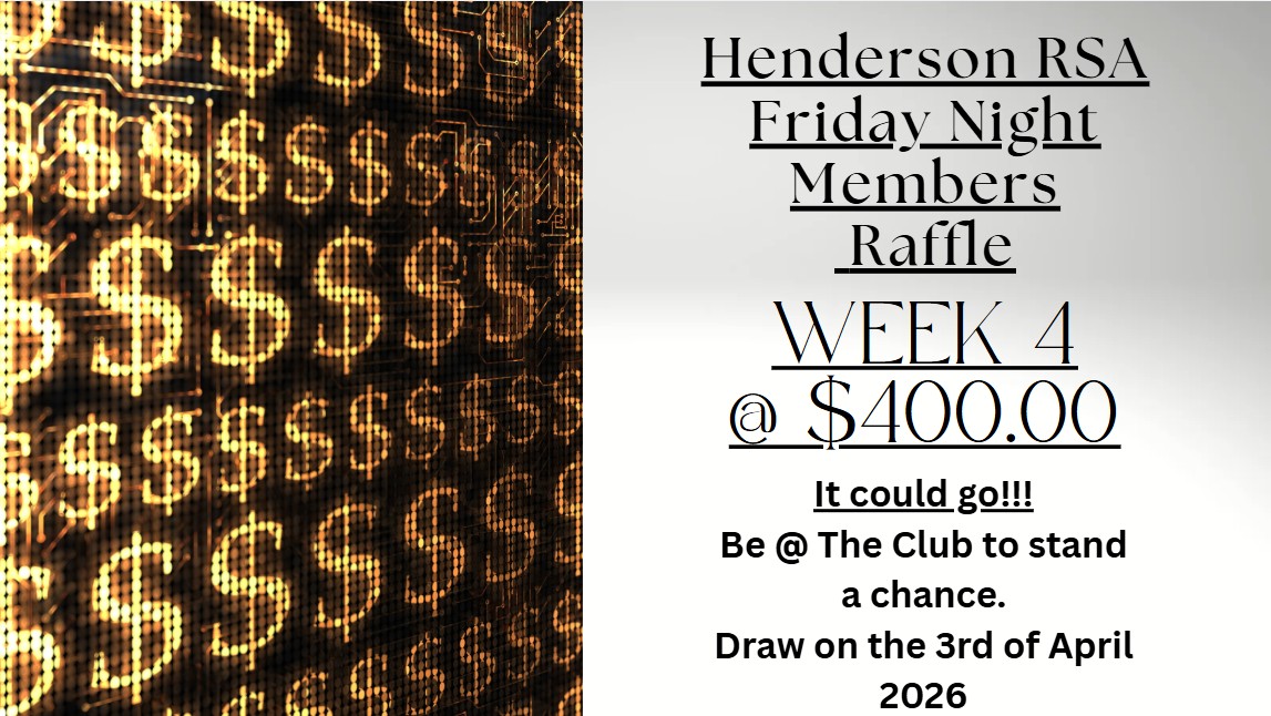 The Henderson RSA welcomes all its Members, New Members and Guests to the Razza