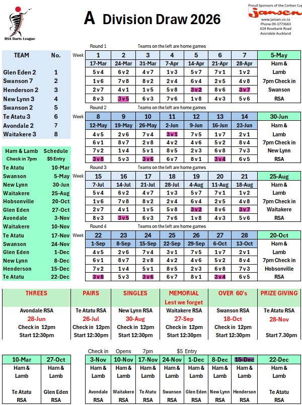 Results from the recent Auckland District RSA Tournament.