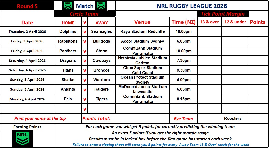 Week FIVE Wednesday Draw – 1st of April 2026 –