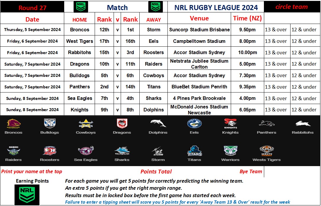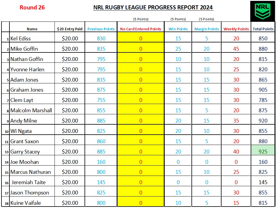Week TEN Wednesday Draw – 4th September is $1000.00