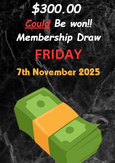 Come along to our Club every Wednesday and Friday to be in to win the  Membership Draw