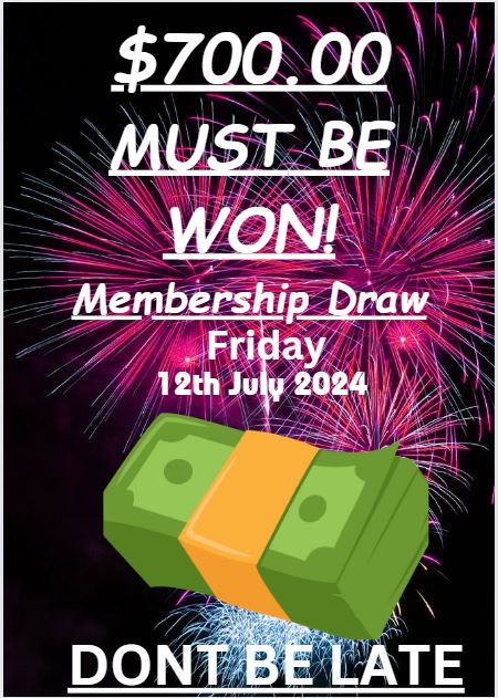 Come along to our Club every Wednesday and Friday to be in to win the Membership Draw