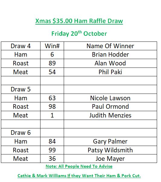 Week One Friday Draw on 4th November 2020 is $100.00 CONGRATULATIONS TO LAST WEEK’S WINNER!