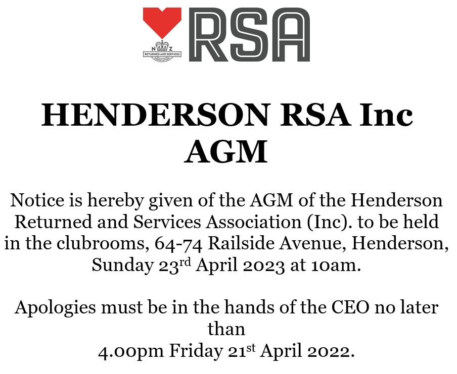 The Henderson RSA welcomes all its Members, New Members and Guests to the Razza