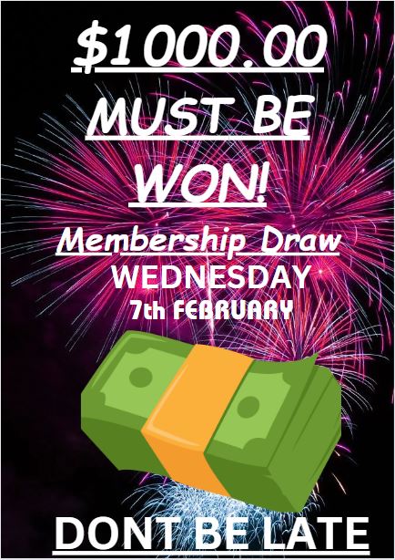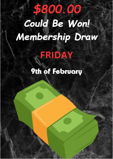 Come along to our Club every Wednesday and Friday to be in to win the Membership Draw