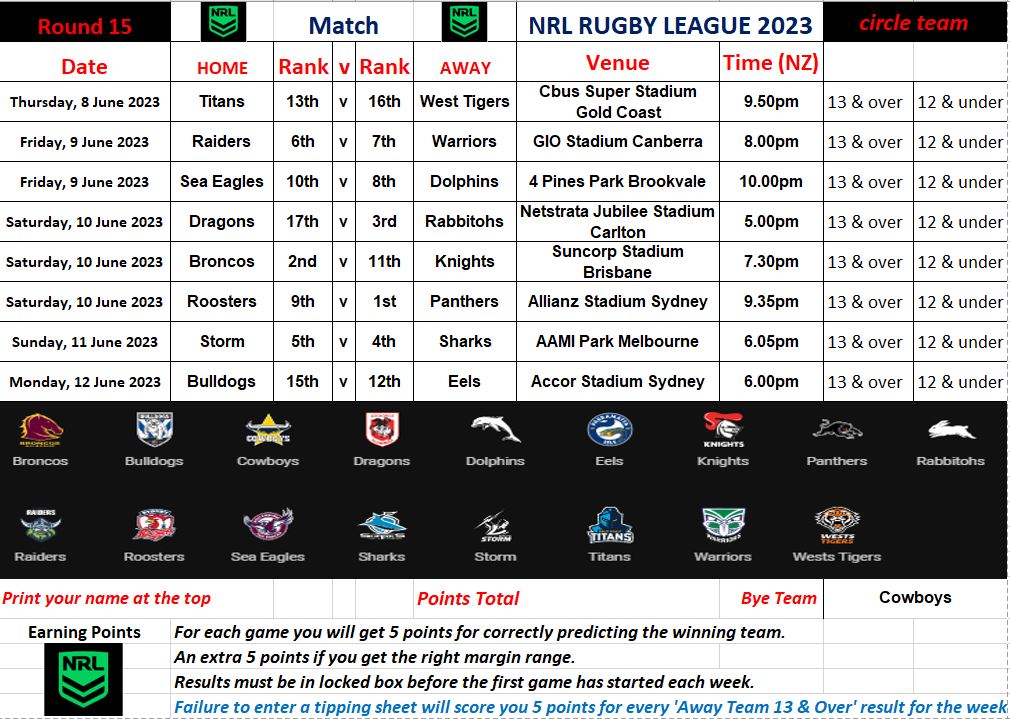 SPORTS TIPPING COMPETITIONS