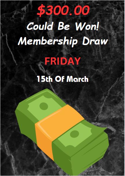 Come along to our Club every Wednesday and Friday to be in to win the  Membership Draw