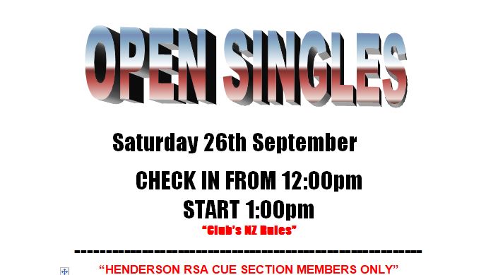 SATURDAY 12TH TO SUNDAY  13TH DECEMBER – AUCKLAND DISTRICT RSA SINGLES SNOOKER TOURNAMENT