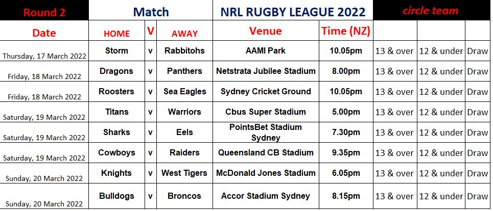 NRL RUGBY LEAGUE 2022 – SPORTS TIPPING