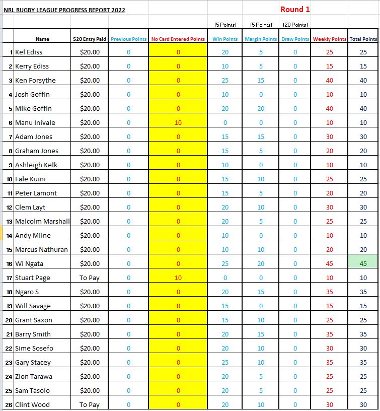 THE NRL RUGBY LEAGUE SPORTS TIPPING COMPETITION CONTINUES THIS THURSDAY