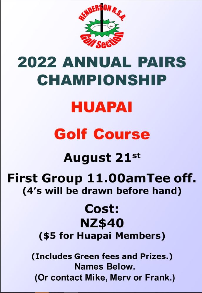 Monthly Sunday Tournament – Sunday 4th September 2022 from 12:30pm