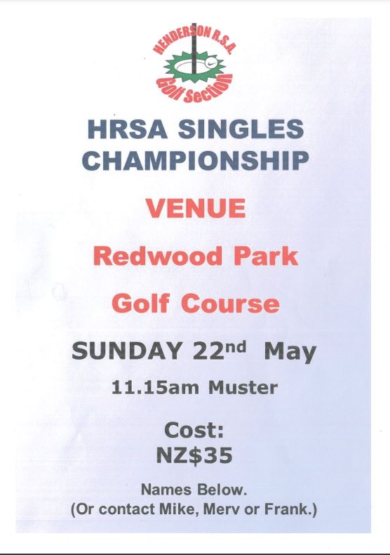 2022 Singles Championship – Redwood Park on Sunday 22nd May mustering at 11:15am
