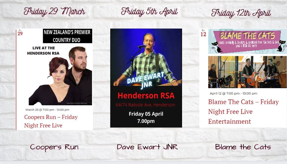 The Henderson RSA welcomes all its Members, New Members and Guests to the Razza