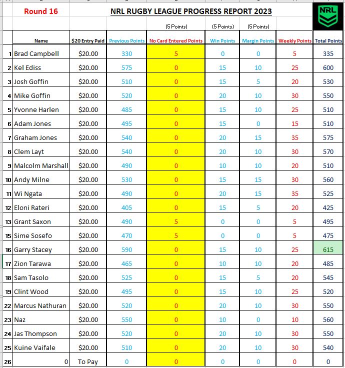Week TEN Wednesday Draw – 21st June 2023 is $400.00 MUST BE WON!