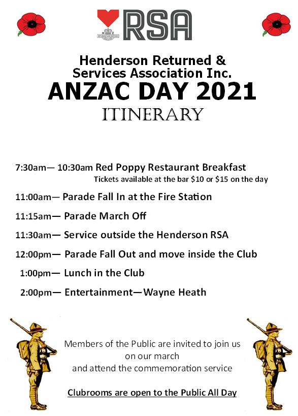 The Henderson RSA welcomes all its Members, New Members and Guests to the Razza