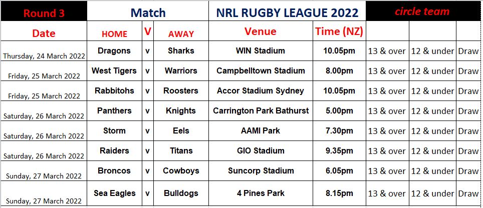 NRL RUGBY LEAGUE 2022 – SPORTS TIPPING