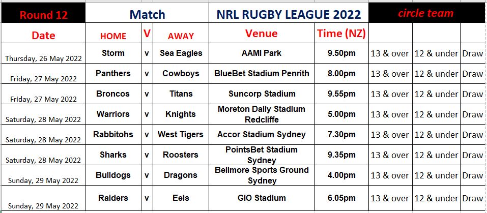 NRL RUGBY LEAGUE 2022 – SPORTS TIPPING