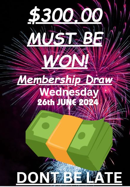 Come along to our Club every Wednesday and Friday to be in to win the  Membership Draw