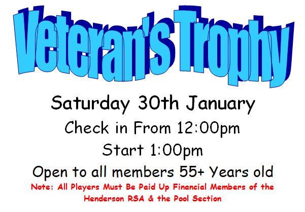 2021 Pool Competition Dates – Veteran’s Trophy over 55’s – Satuday 30th January