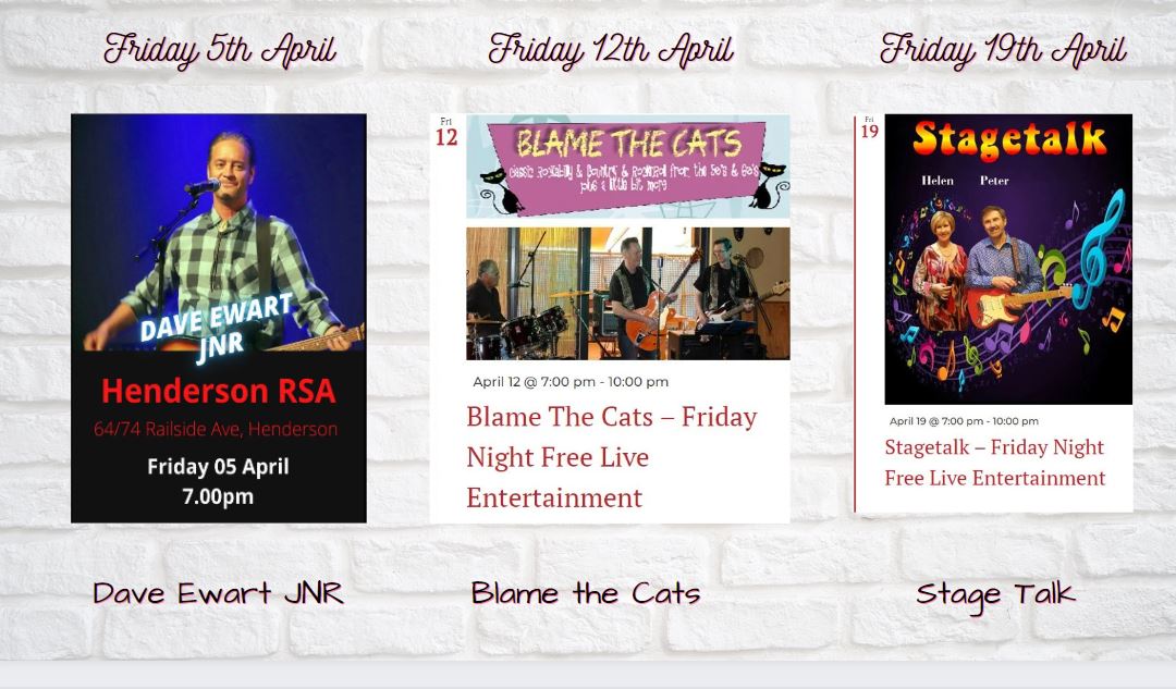The Henderson RSA welcomes all its Members, New Members and Guests to the Razza