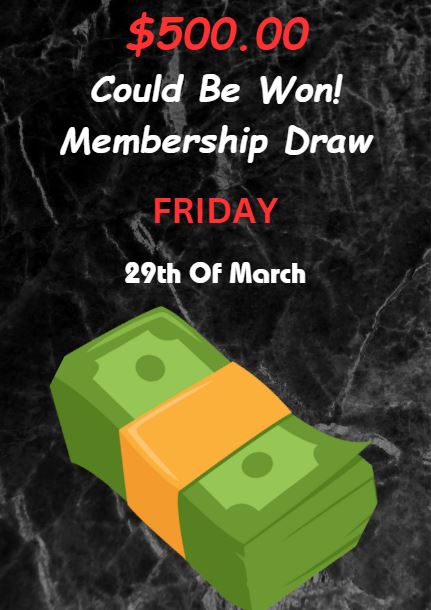 Come along to our Club every Wednesday and Friday to be in to win the  Membership Draw