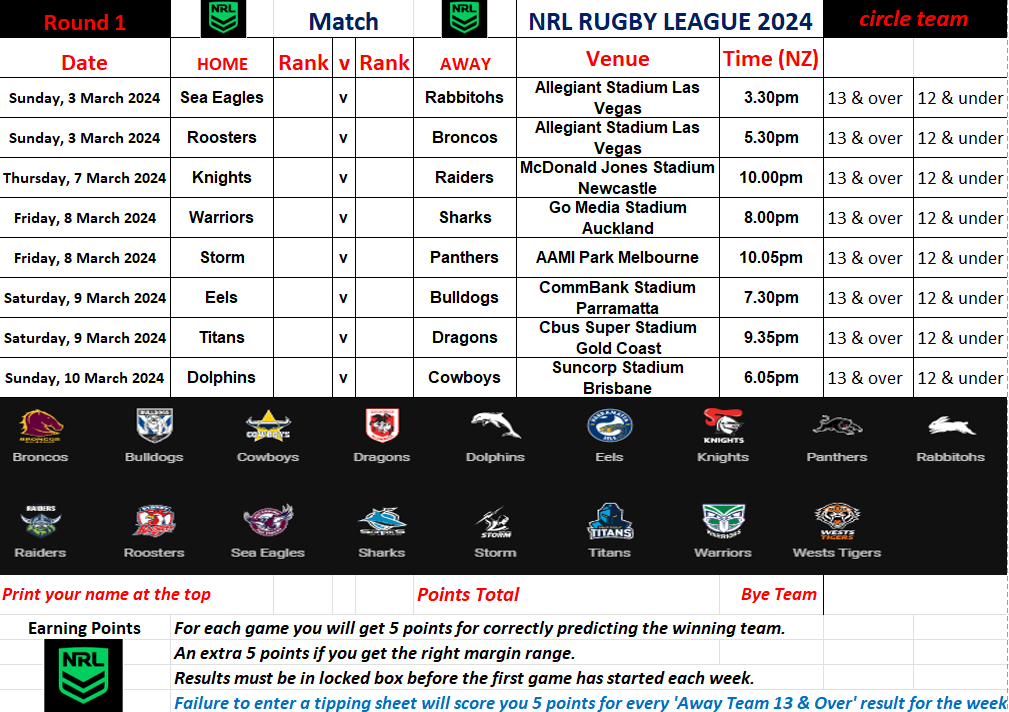 NRL  starts 3rd March