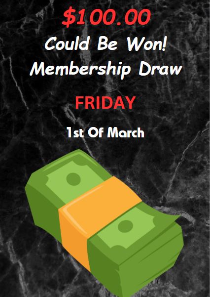 Come along to our Club every Wednesday and Friday to be in to win the  Membership Draw